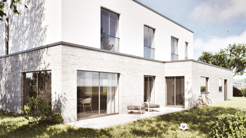 Das Gebäude, konstruiert aus Hochlochziegeln, erreicht den hohen Energiestandard KfW 40. Dies wird durch eine fortschrittliche Haustechnik unterstützt: Eine Wärmepumpe, eine Photovoltaikanlage auf dem Dach und eine zentrale Lüftungsanlage sorgen für ein nachhaltiges und energieeffizientes Wohnen. Die Fußbodenheizung garantiert dabei ein angenehmes Raumklima.