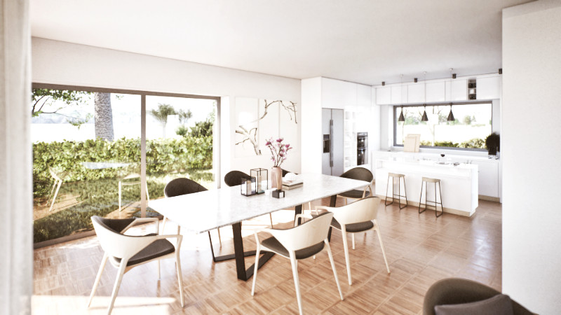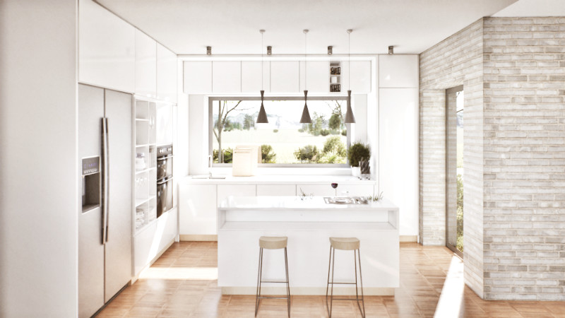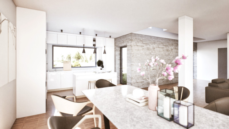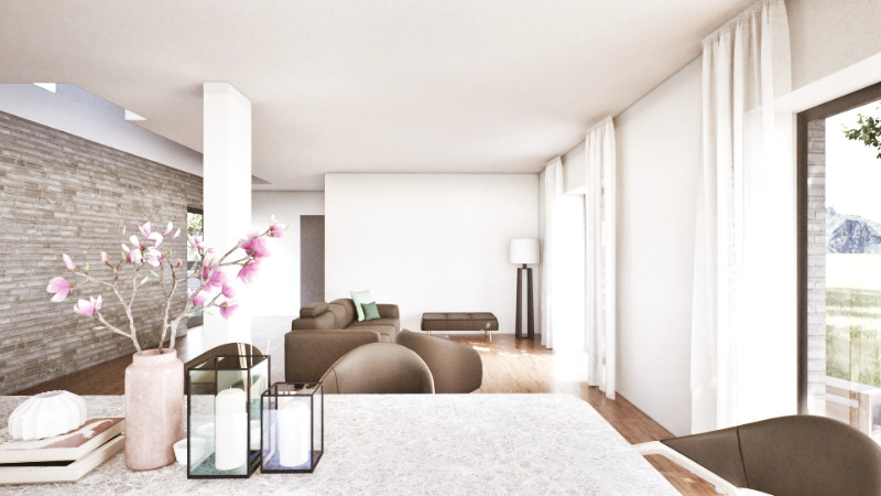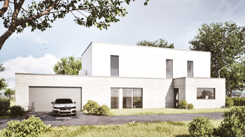 Die Bewohner profitieren zudem von einem Smart Home-System, das eine intuitive Steuerung von Beleuchtung, Heizung und Sicherheit ermöglicht. Elektrische Raffstore bieten optimalen Sonnen- und Sichtschutz. Ein weiteres Highlight ist die Doppelgarage, die nicht nur Platz für Fahrzeuge bietet, sondern auch das Gesamtbild des Hauses abrundet. Das Haus verbindet somit ästhetische Qualitäten mit modernster Technik und höchstem Wohnkomfort.